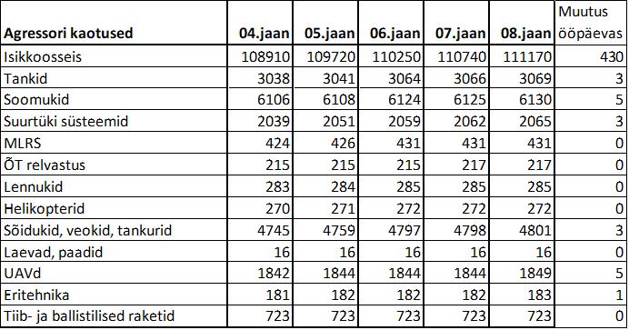 Operatiiv- ja sõjaga seotud info 08. jaanuaril