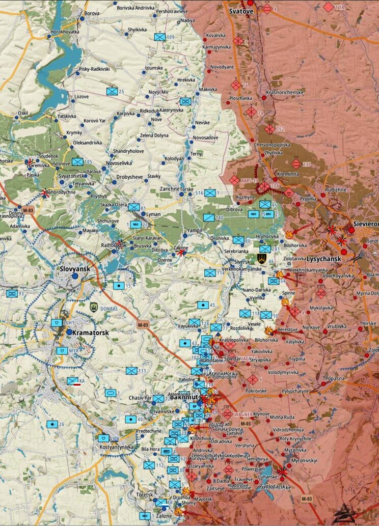 Ukraina kaitseväe üksused tõrjusid okupantide rünnakud Bílogorívka piirkonnas Luganski oblastis ja Terna, Verhnyokamianske, Soledari, Sil, Krasna Gora, Bakhmuti, Alexander-Shultine, Kurdyumivka, Vodâne, Marynka, Victory ja Paraskovievka piirkonnas Donetski oblastis.