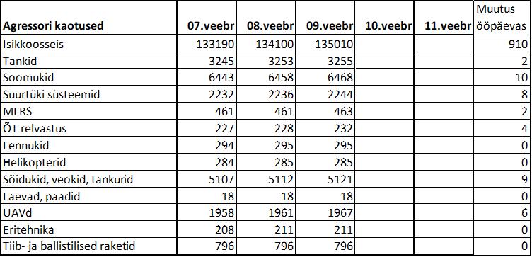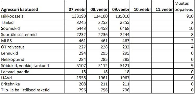 Operatiiv- ja sõjaga seotud info 09. veebruaril