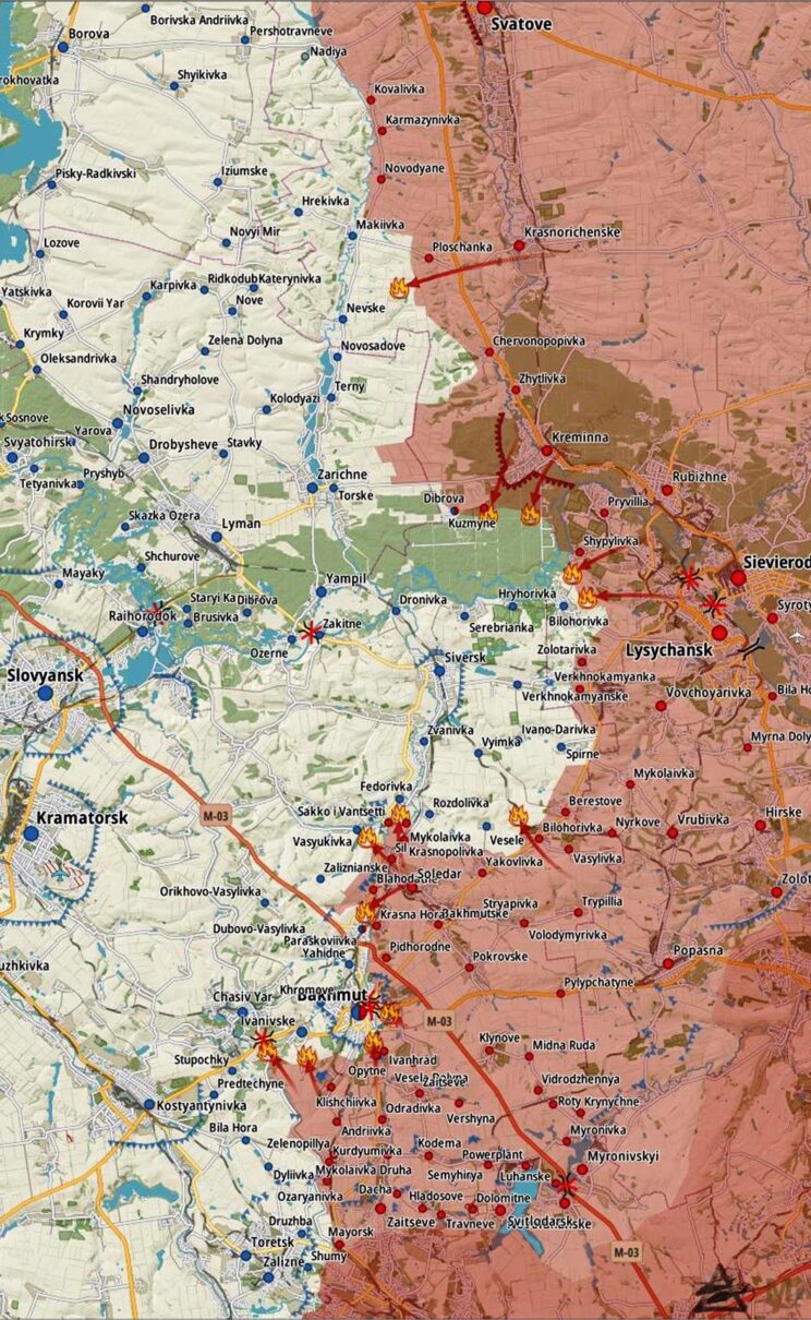 - Lõsõtchanski suunal Ukraina tõrjus rünnakud Nevske, Kreminna, Kuzmine, Shipylivka, Bilonorivka, Vitka, Fedorivka, Vasyukivka piirkondades.