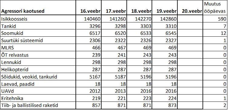 Operatiiv- ja sõjaga seotud info 19. veebruaril