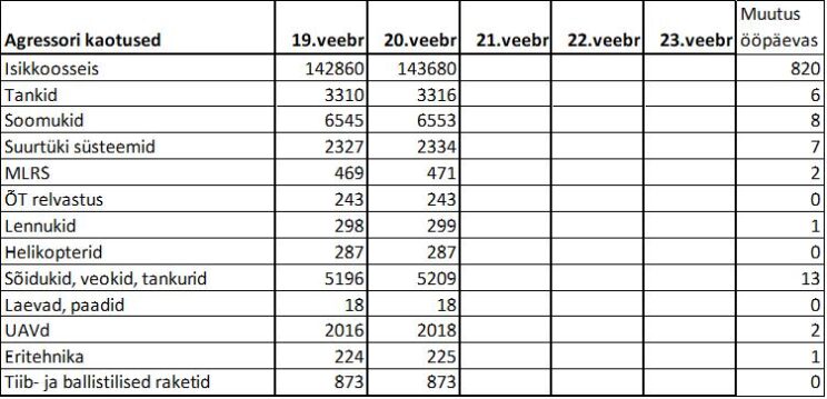 Operatiiv- ja sõjaga seotud info 20. veebruaril