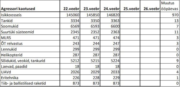 Operatiiv- ja sõjaga seotud info 24. veebruaril