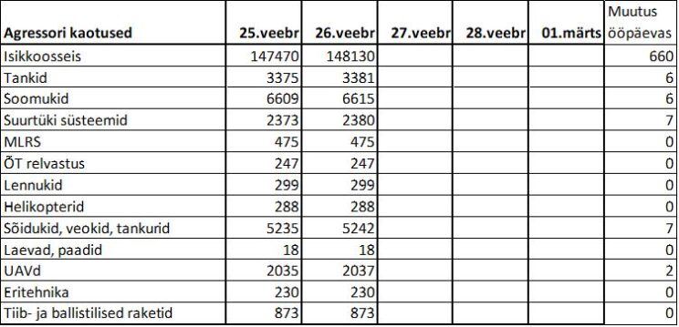 Operatiiv- ja sõjaga seotud info 26. veebruaril