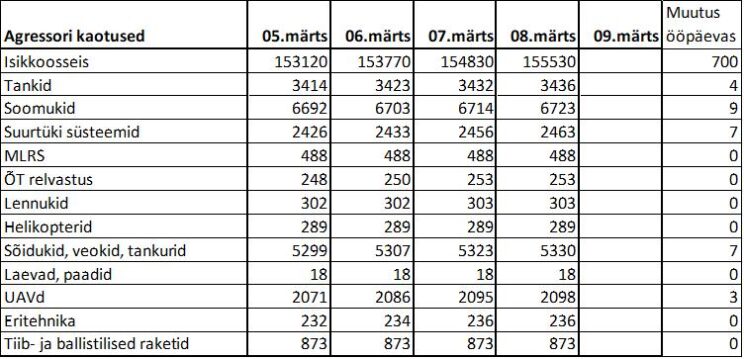 Operatiiv- ja sõjaga seotud info 08. märtsil