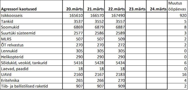 Operatiiv- ja sõjaga seotud info 22. märtsil