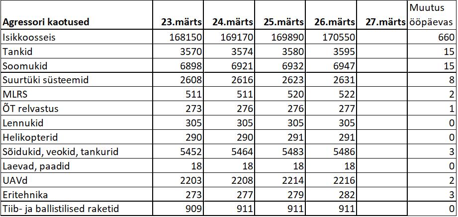 Operatiiv- ja sõjaga seotud info 26. märtsil