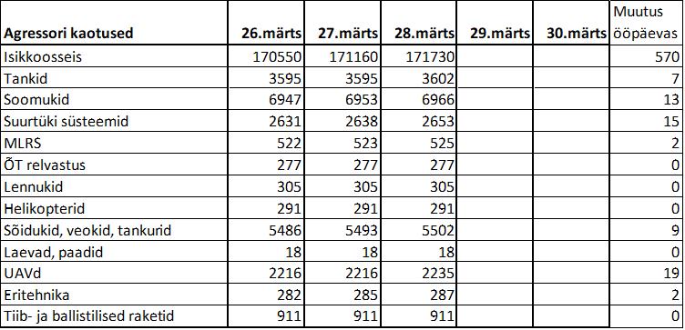 Operatiiv- ja sõjaga seotud info 28. märtsil