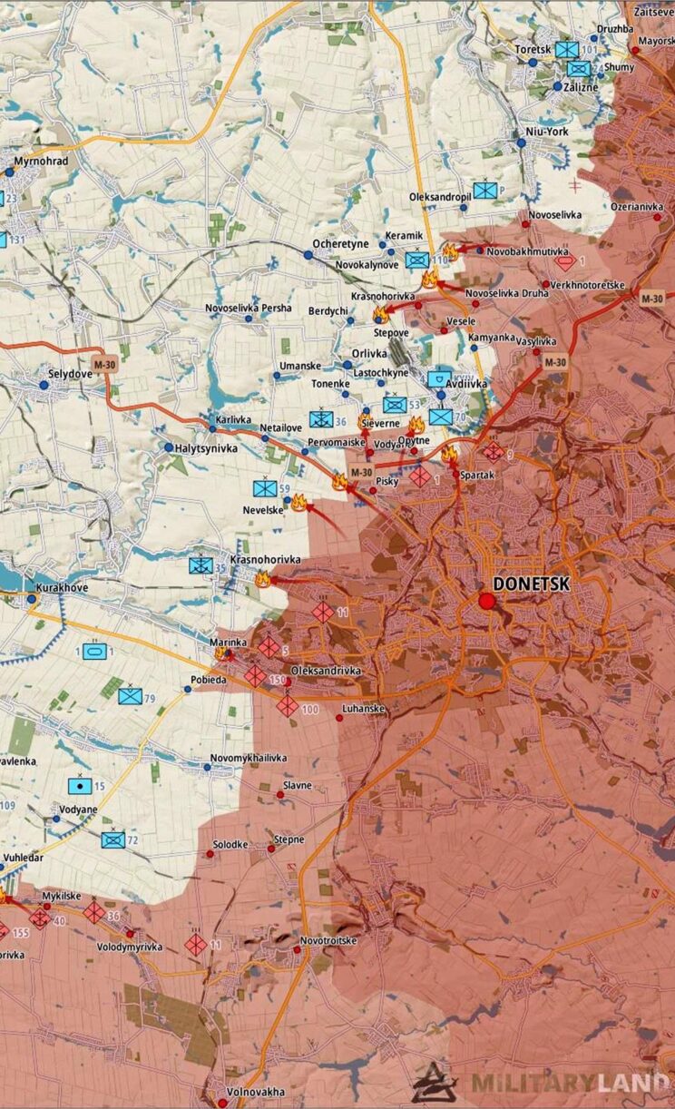 - Vaenlane vallutas kooli nr. 2 Marinka kesklinnas. Kuigi allikaks on Venemaa riigi asutatud televisioon, tõestab geolokatsioon vaenlase kohalolekut piirkonnas. (allikas)