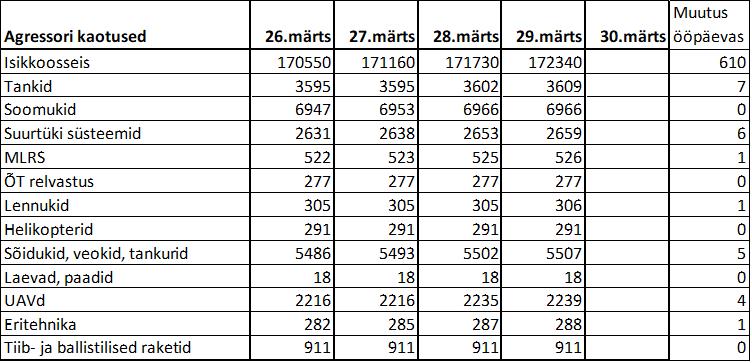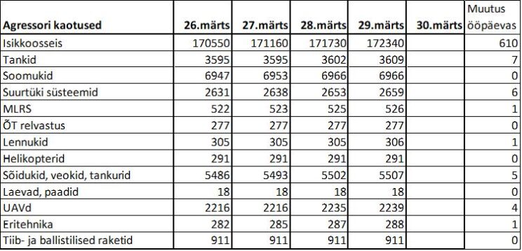 Operatiiv- ja sõjaga seotud info 29. märtsil