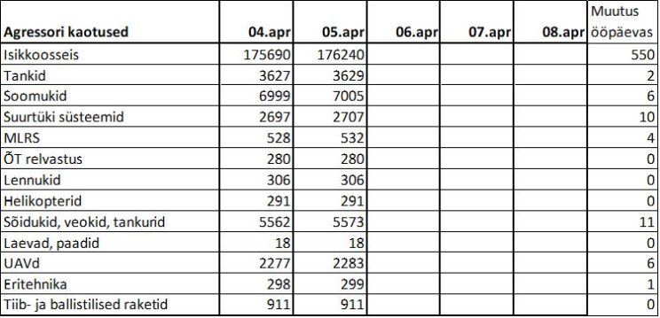 Operatiiv- ja sõjaga seotud info 05. aprillil