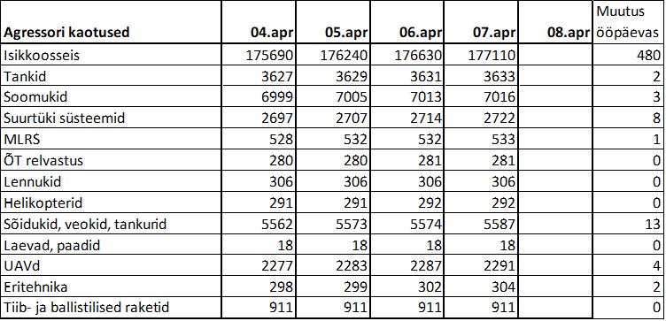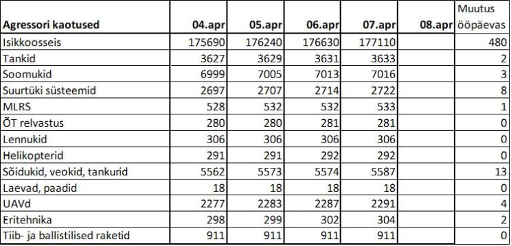 Operatiiv- ja sõjaga seotud info 07. aprillil