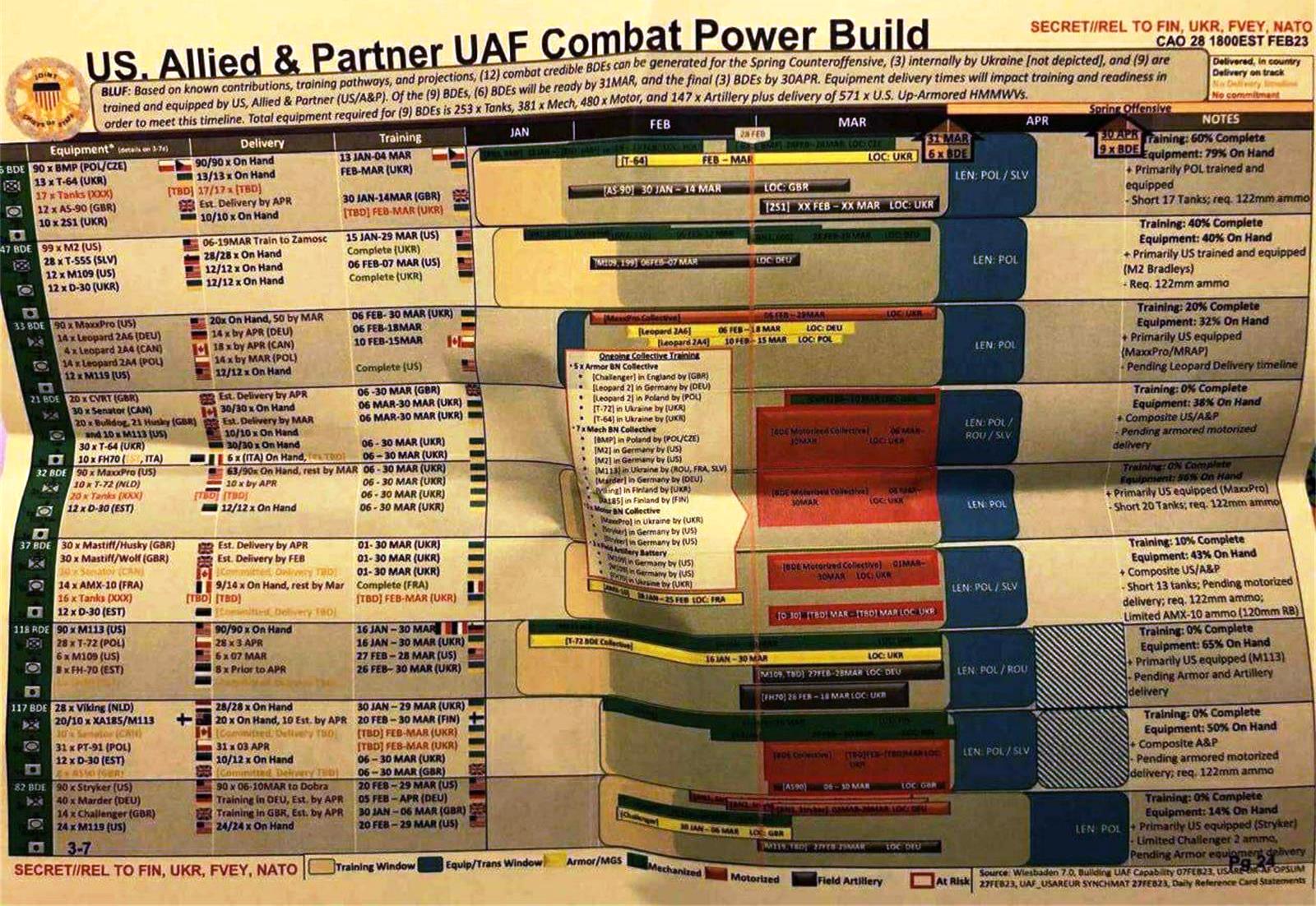 New York Timesi andmetel postitati sel nädalal Twitterisse ja Telegrami salastatud dokumendid, milles kirjeldati üksikasjalikult USA ja NATO plaane anda abi Ukraina relvastamiseks eelseisva vasturünnaku jaoks. Väidetavalt asus Pentagoni asja uurima ning selle uurimise kohta postitasin ka artikli Kolonel Hans FB lehele. Praeguseks pole sots meedias infot rohkem levitatud. Ukraina sõjaväeluure teatas, et hiljuti internetti lekkinud oletatavad salastatud sõjadokumendid on võltsitud Venemaa poolt. Dokumendid ei paljasta üksikasju selle kohta, millal, kuidas või kus kavatseb Ukraina oma vasturünnakut alustada ning need on väidetavalt viis nädalat vanad (Ps! järelikult autentsed?). Sõjaväeanalüütikute sõnul, kellega ajaleht New York Times rääkis, muudeti dokumente tõenäoliselt nende algsest vormingust, alahinnates Venemaa kaotusi ja ülehinnates Ukraina poole hukkunuid. Ukraina kaitseministeeriumi luure peadirektoraadi pressiesindaja Andrii Jusov ütles, et venelased võisid võltsida dokumente, et häirida või aeglustada Lääne abi andmist Ukrainale ning et dokumentidel olevad andmed kaotuste kohta olid mõlemalt poolelt “valed” ning osa dokumentides sisalduvast teabest näis olevat pärit avatud allikatest. Bideni ametnikud ütlesid ajalehele, et katsed saada teavet sotsiaalmeediast kustutamiseks ei ole veel edukaks osutunud.