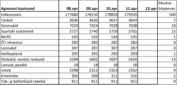 Operatiiv- ja sõjaga seotud info 11. aprillil