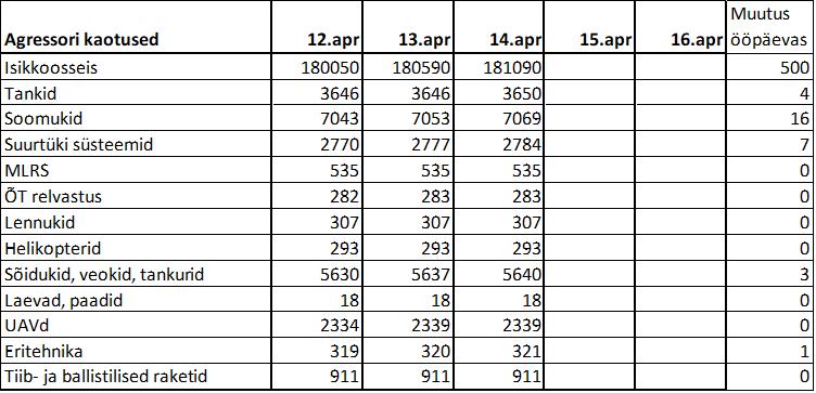 Operatiiv- ja sõjaga seotud info 14. aprillil