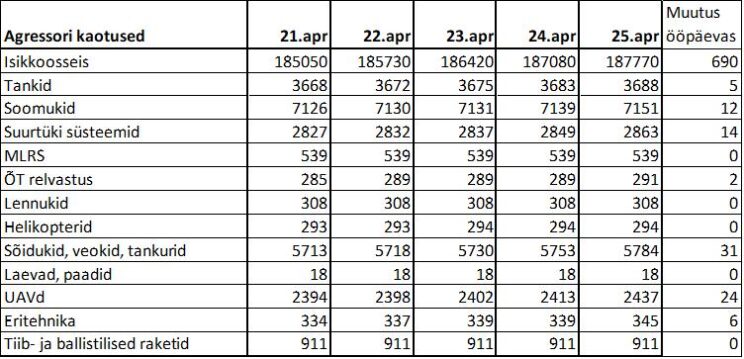 Operatiiv- ja sõjaga seotud info 25. aprillil