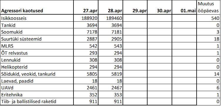 Operatiiv- ja sõjaga seotud info 28. aprillil