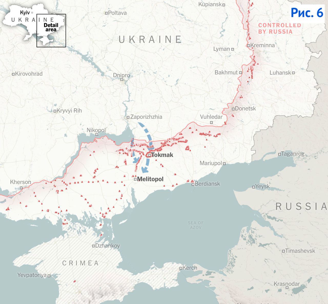 Samas puuduvad tõendid selle kohta, et Vene armee oleks koondanud Zaporožje rindele suuri jõude ja reserve. Pigem vastupidi, välja arvatud Vuhledar, on seal juba pikemat aega kõik rahulik ja ilmselt on Vene kindralite pingutused ja tähelepanu suunatud ida- ja Luganski rindele. Üldiselt tundub vägede olemasolul rünnak lõunas väga paljutõotav – see on kindlasti proovimist väärt. Kuidas see juhtuda saab?