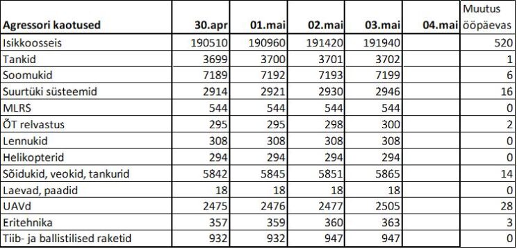 Operatiiv- ja sõjaga seotud info 03. mail