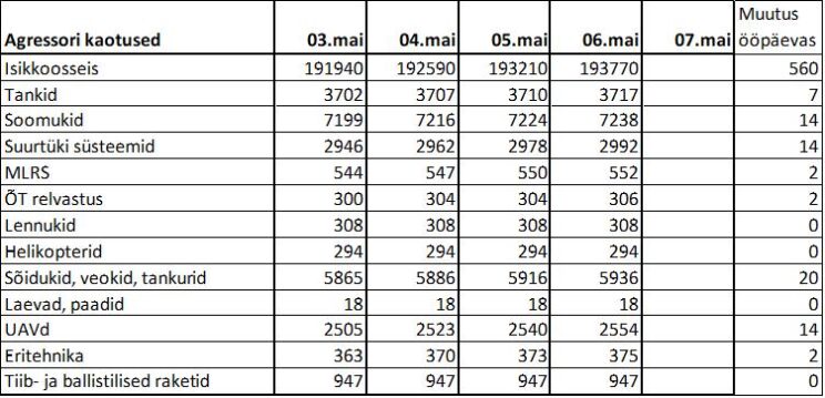 - Roman Svitan käsitles 6. mai uues sõjalises kokkuvõttes järgmisi teemasid:
