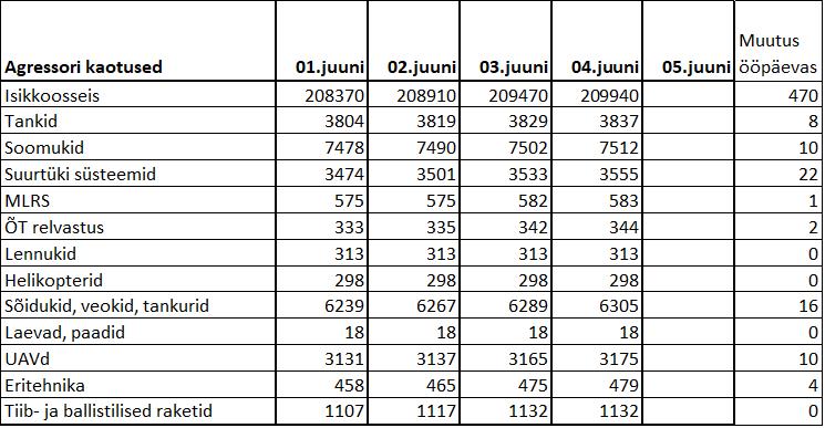 Operatiiv- ja sõjaga seotud info 04. juunil
