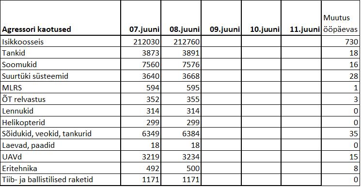 Operatiiv- ja sõjaga seotud info 08. juunil
