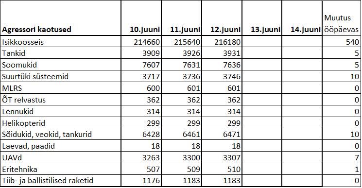 Operatiiv- ja sõjaga seotud info 12. juunil