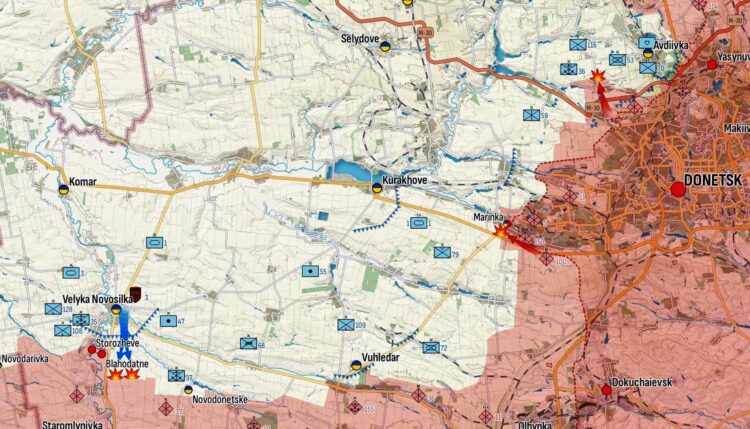 - Visegrad24: Ukraina armee vallutas Novomaiorske (Novodonetskist idas). Venemaa teatab lahingutest Staromlynivka piirkonnas (Donetski oblast, Blagodatne’st lõunas). See viitab, et UA läbimurde sügavus hetkel on umbes 14 km. Staromlynivka on Venemaa kaitsedoktriini kohaselt strateegilisemate Venemaa reservide kasutuselevõtu käivitaja. Arestovichi sõnul vene operatiivreservid juba liiguvad.