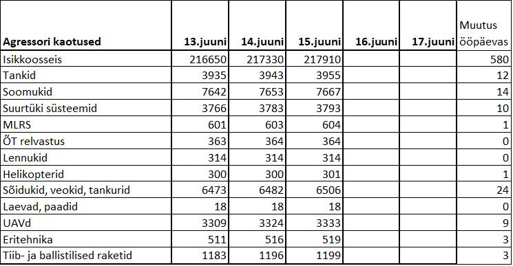 Operatiiv- ja sõjaga seotud info 15. juunil