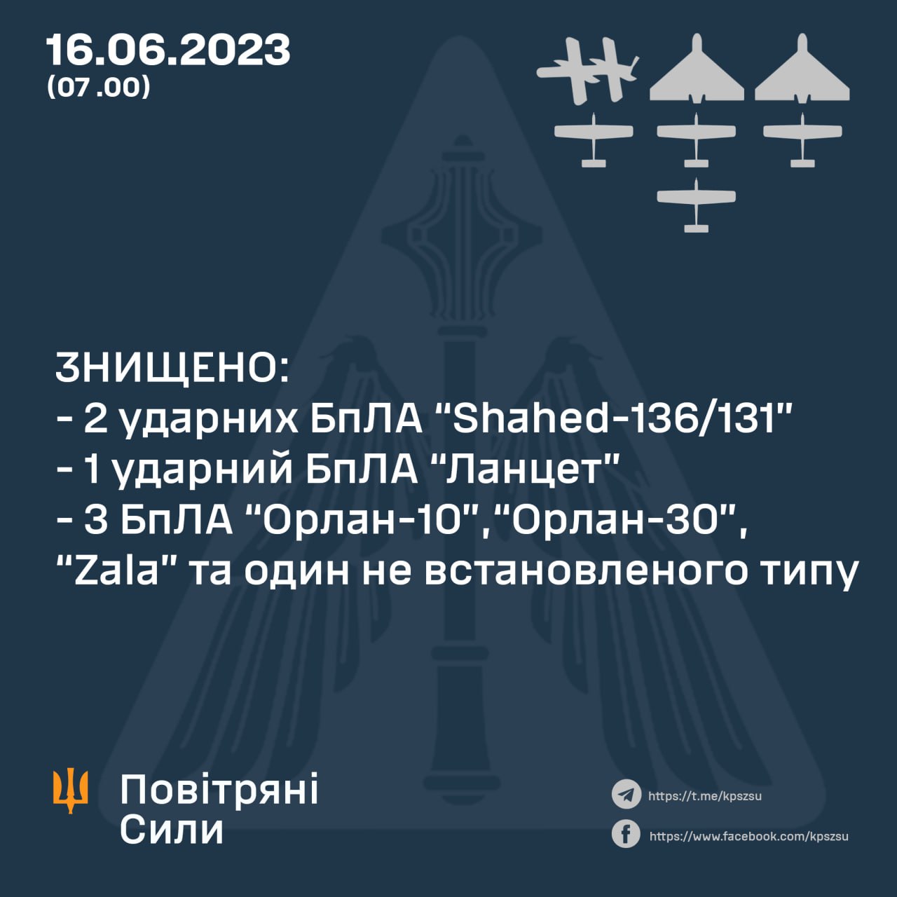 Vene väed korraldasid 15. juuni varahommikul järjekordse drooni- ja raketirünnakute seeria üle Ukraina. Täna öösel andis Venemaa Föderatsioon järjekordse õhulöögi üle Ukraina, andis 2 lööki “Shahed” UAV’dega. Õhutõrje hävitas kõik droonid.