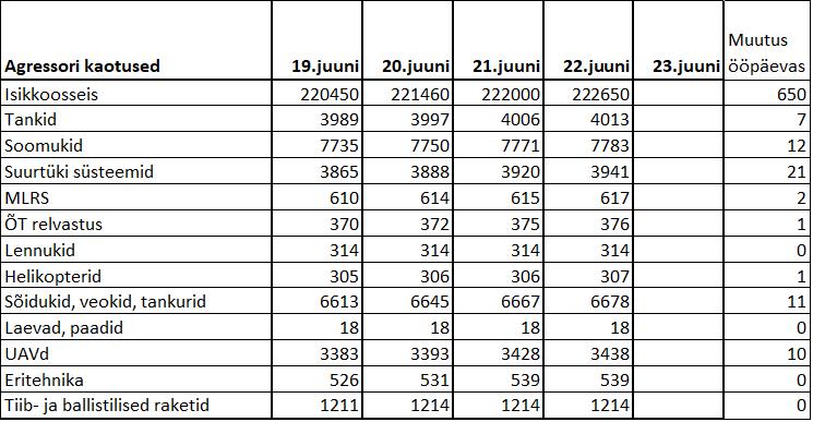Operatiiv- ja sõjaga seotud info 22. juunil