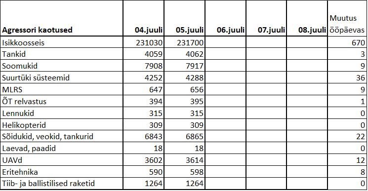 Operatiiv- ja sõjaga seotud info 05. juulil
