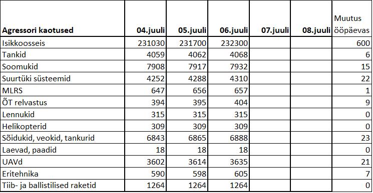 Operatiiv- ja sõjaga seotud info 06. juulil