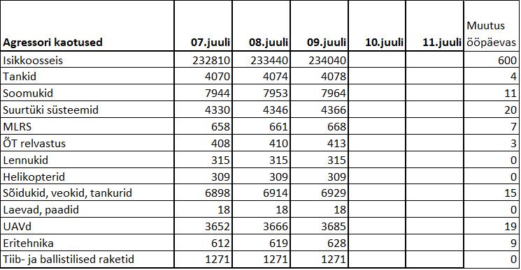 Operatiiv- ja sõjaga seotud info 09. juulil