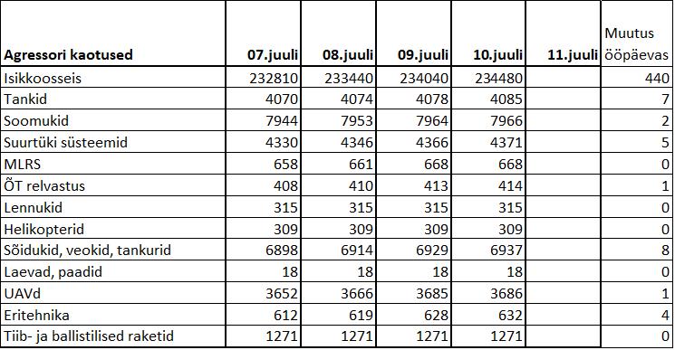 Operatiiv- ja sõjaga seotud info 10. juulil