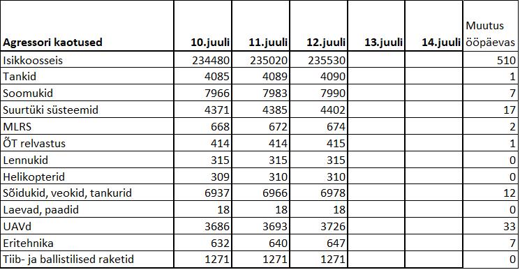 Operatiiv- ja sõjaga seotud info 12. juulil