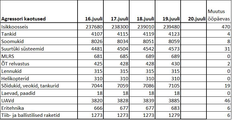 Operatiiv- ja sõjaga seotud info 19. juulil