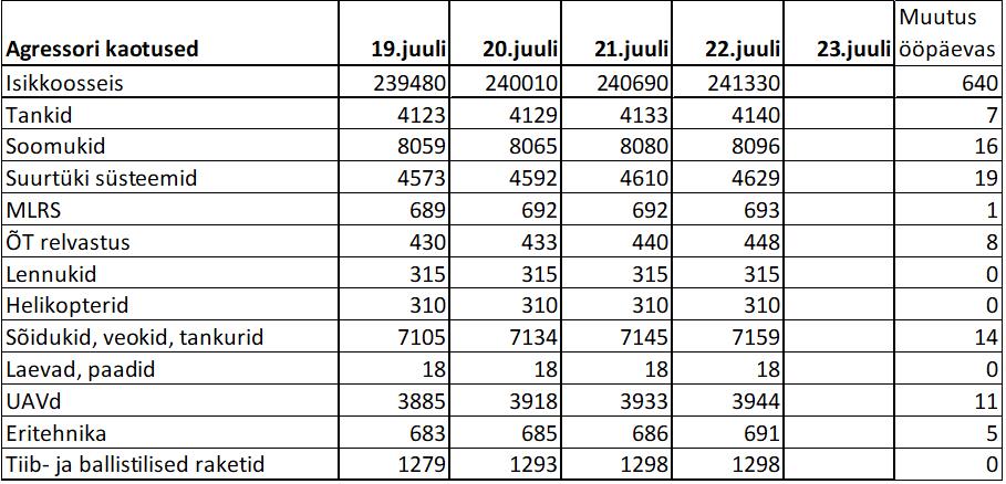 Operatiiv- ja sõjaga seotud info 22. juulil