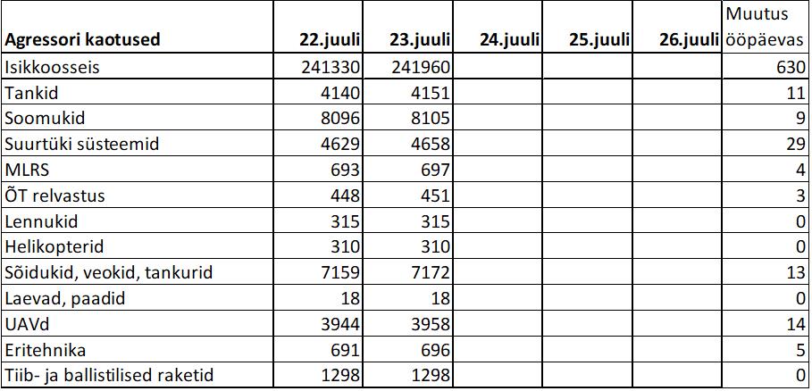 Operatiiv- ja sõjaga seotud info 23. juulil