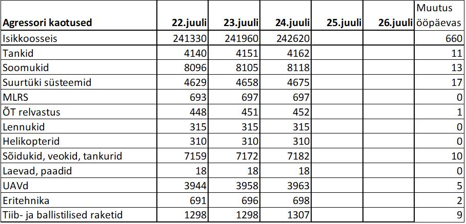 Operatiiv- ja sõjaga seotud info 24. juulil