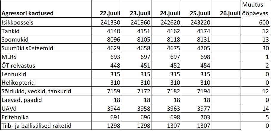 Operatiiv- ja sõjaga seotud info 25. juulil