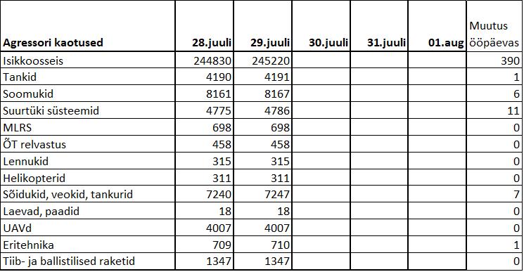 Operatiiv- ja sõjaga seotud info 29. juulil