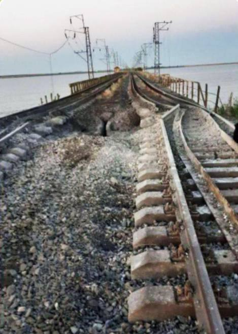 • Väidetavalt võtab Tchongari silla parandus seekord rohkem aega. Moskva torne olevat rünnatud Sahed droonidega.Vene allikas. Foto Chongari silla kahjustatud raudtee rööbastest pärast seda, kui Briti tiibrakett Storm Shadow  29. juulil tabas seda.30. juuli satelliidipildil on näha ka kahjustusi Hersoni oblasti Sivaši poolelt. Varem on Hersoni oblasti kuberner väitnud, et vaenlase raketid tulistati alla õhutõrjega, millest ühe vrakk kahjustas liinimehe kabiini ja kontaktliini. Kuid nagu näha, pole “tormi varju” oht Krimmi jaoks kuhugi kadunud.