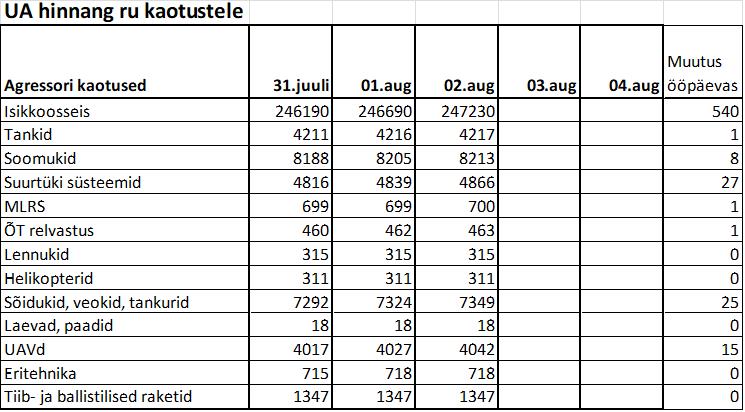 Operatiiv- ja sõjaga seotud info 02. augustil