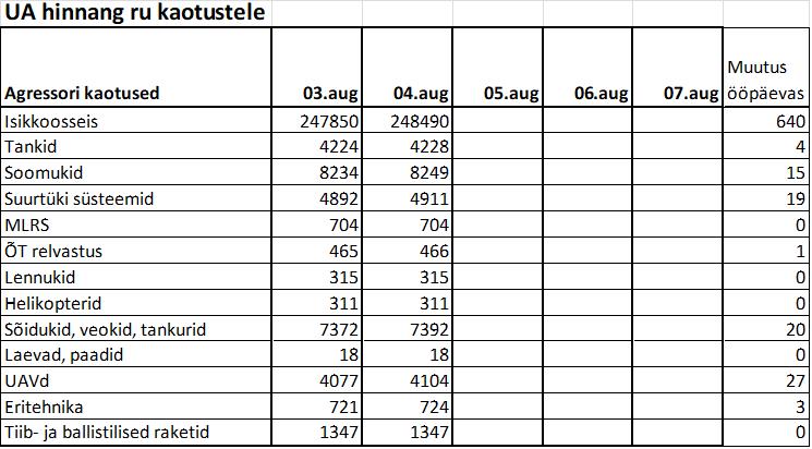 Operatiiv- ja sõjaga seotud info 04. augustil