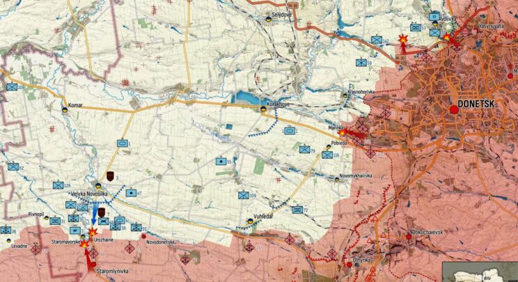 - Ukraina väed, tõenäoliselt 38. merejalaväe brigaad, ründasid Vene positsioone Urozhaines ja sisenesid asulasse. Ukraina rünnaku tulemus pole teada, kuid kaht BMP-3 nähti äärelinnas mahajäetuna. Piirkond on tõenäoliselt vaidlustatud. (allikas)