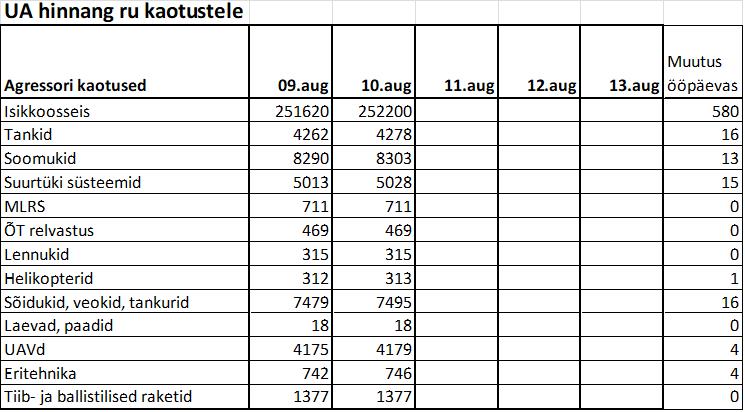 Operatiiv- ja sõjaga seotud info 10. augustil