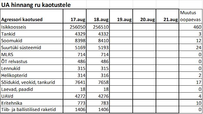 Operatiiv- ja sõjaga seotud info 18. augustil