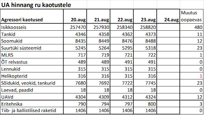 - Roman Svitan käsitles 23. augusti uues sõjalises kokkuvõttes järgmisi teemasid: