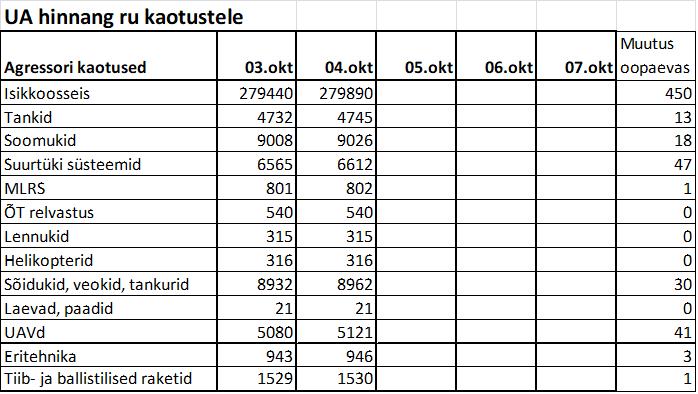 Operatiiv- ja sõjaga seotud info 04. oktoobril